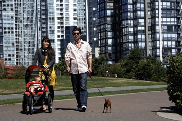 - Allow the dog to get near the baby, but not close enough to sniff. You can also walk with the baby alongside the dog. This could be a stroller walk or an adult holding the baby. If you do a walk, have the stroller on one side, an adult in the middle and dog on the other side.